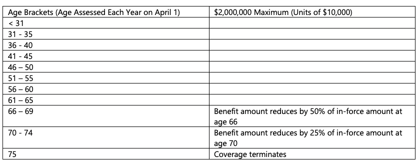 Your premiums are based on your age at the time of annual renewal (April 1). When you move into a new age bracket, your premium will adjust accordingly. You can refer to the Age Brackets table below for more details.